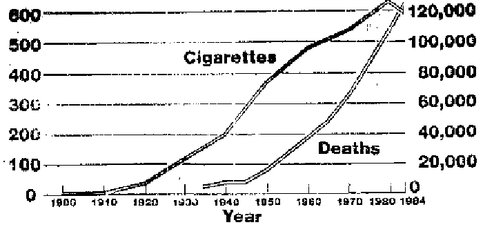 Extrapolaties wijzen uit dat in de periode 1959-2000 in de geïndustrialiseerde landen 60 miljoen mensen zullen zijn gestorven door tabaksgebruik, waarvan 40 miljoen in de leeftijdscategorie van 35 tot 69 jaar. Dit laatste is niet alleen belangrijk vanuit economisch oogpunt. Het betekent op het individuele vlak dat de levensverwachting van rokers gevoelig lager ligt dan die van niet-rokers. Voor rokers in de vermelde leeftijdscategorie zou dit verschil 22 jaar bedragen.