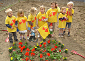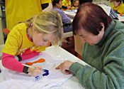 De warmte en openheid die uitgaat van de kleutertjes enerzijds en de ouderen anderzijds maken hen bijzonder vatbaar voor talrijke kunstvormen, hoe bescheiden ook. We trachten liefdevolle stimulansen te geven om spontaan te zijn, te volharden en te groeien naar elkaar en naar een tastbaar inzicht in hun eigen kunnen.