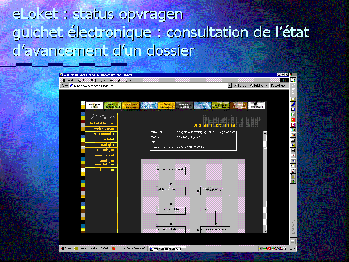 Le recours généralisé aux nouvelles technologies permet d'épargner au citoyen le risque d'encore s'égarer dans le dédale administratif et dans le labyrinthe que constituent les pouvoirs publics. Il lui suffira dorénavant de poser une question concrète. Les réponses lui seront fournies par les autorités compétentes. On réalise une triple opération, en ce sens que les compétences restent acquises à ceux à qui elles avaient été attribuées, que l'autorité compétente se fait connaître en donnant la réponse et que les citoyens peuvent se contenter de poser des questions de fond sans avoir à s'inquiéter de savoir qui a quoi dans ses compétences. Simplification à la énième puissance. Mais il est essentiel à cet égard que les autorités assurent toutes le service à leur clientèle par le biais d'accords de coopération et se présentent en quelque sorte comme une autorité virtuelle unique.
