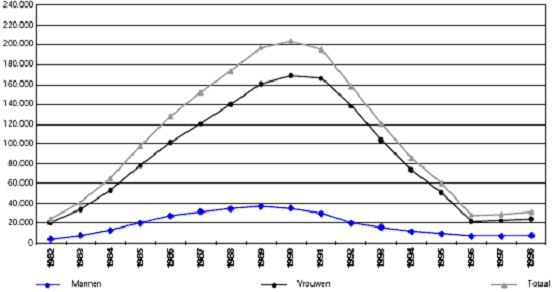 Ce dernier statut fut définitivement supprimé en 1996. Ce changement fut capital car il réduisit considérablement le nombre de personnes ayant droit à une indemnisation et allégea, par conséquent, fortement le budget de l'État. Ainsi, alors que le nombre de travailleurs à temps partiel indemnisés évoluait d'un peu plus de 20 000 unités en 1982 à plus de 200 000 en 1991, il descendit progressivement à 30 000 en 1996 ! En 1998, le pourcentage de travailleurs à temps partiel indemnisés ne représentait plus que 20 % du nombre de ces travailleurs enregistrés en 1992 (voir annexe pour un aperçu graphique).