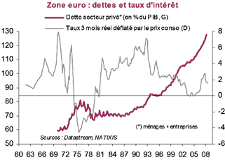 De financiële mondialisering is echter alleen maar de katalysator die crisissen versnelt en vergroot. De werkelijke oorzaken liggen veel dieper. De huidige crisis is een algemene schuldencrisis die een algemene crisis in de vraag tot gevolg heeft. Uit onderstaande grafiek blijkt dat de schuldenlast van de particuliere sector (huishoudens en bedrijven) de jongste veertig jaren in de landen van de eurozone meer dan verdubbeld is.