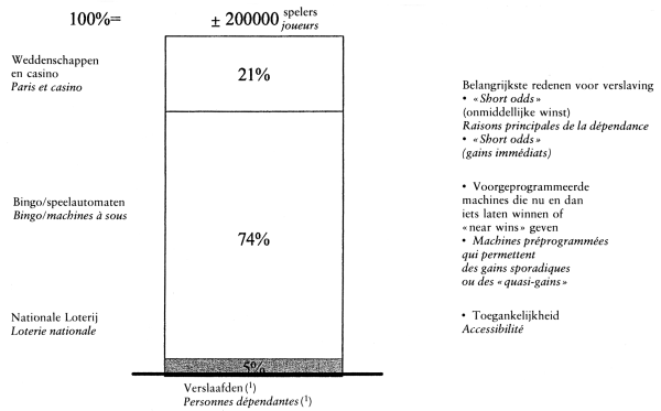 En tant que cinquième élément, M. D'Hooghe retient l'affirmation surprenante du ministre selon laquelle les loteries ne créeraient guère de dépendance (5 %), alors que les jeux de hasard provoqueraient une dépendance considérable (74 %). Sur quoi ces chiffres se fondent-ils exactement ? Quelle définition du terme « loterie » a-t-on utilisée ? Si on organise des loteries électroniques où les joueurs connaissent immédiatement les résultats, la dépendance augmentera sensiblement. C'est à la lumière de cet élément qu'il faut examiner l'affirmation du ministre selon laquelle la part relative des loteries doit à nouveau augmenter.