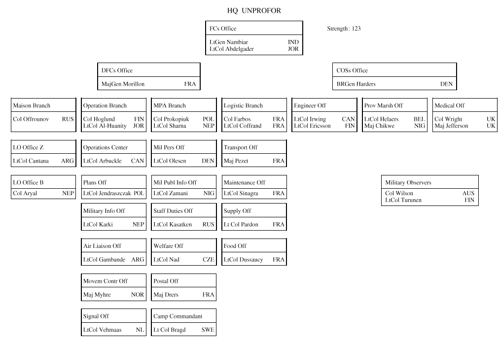 Pour la mission, les effectifs ont été fixés seulement en fonction d'une appréciation budgétaire. L'analyse préalable de la situation et de la mission, tant par l'O.N.U. que par l'État-Major Général avait montré la nécessité de plus d'effectifs que ceux qui ont été mis en place. Il peut être utile de rappeler au passage l'absolue nécessité pour chaque commandant à chaque échelon d'avoir une réserve disponible. Pour éliminer les risques dans le domaine de la protection du personnel, il faut emmener systématiquement l'armement lourd et ses munitions. Les coûts entraînés par l'utilisation de matériels lourds seront compensés par des avantages opérationnels évidents.