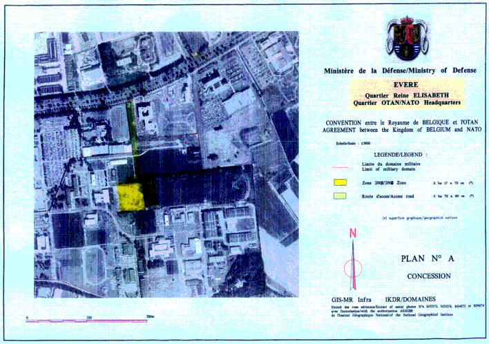 À l'occasion de l'installation du Siège de l'Organisation du Traité de l'Atlantique Nord (OTAN) à Bruxelles, le gouvernement du Royaume de Belgique a donné en concession à l'Organisation du Traité de l'Atlantique Nord un terrain relevant du domaine public militaire d'une superficie de 19Ha 72a 42ca en vue de la construction provisoire du siège de cette Organisation. Cette concession fut conclue dans une Convention, signée le 6 octobre 1967.