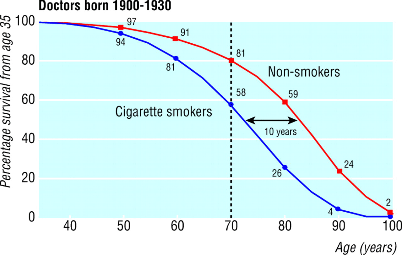 Belangrijk is echter dat fatalisme niet gepast is. Roken is dodelijk, maar stoppen met roken brengt een oplossing. Hoe vroeger men stopt, hoe beter. Wie op 30 jaar stopt met roken verkleint het risico op longkanker van 16 % tot ongeveer 2 %. Zelfs wie op 50 jaar stopt halveert het risico; het is dus zeker nog de moeite om dan te stoppen, zelfs nog op latere leeftijd. De maatregel om het roken in de horeca te verbieden kan hierop een positieve invloed hebben.