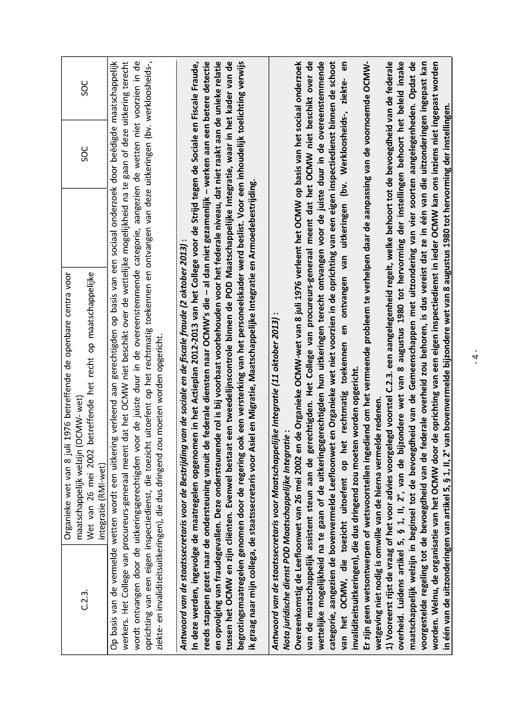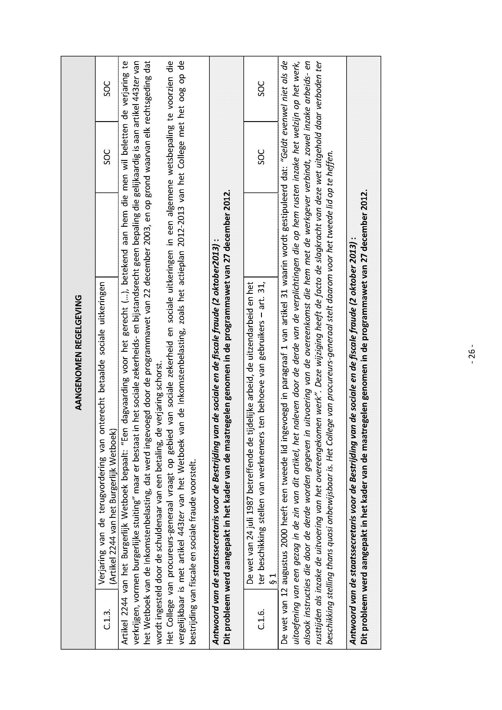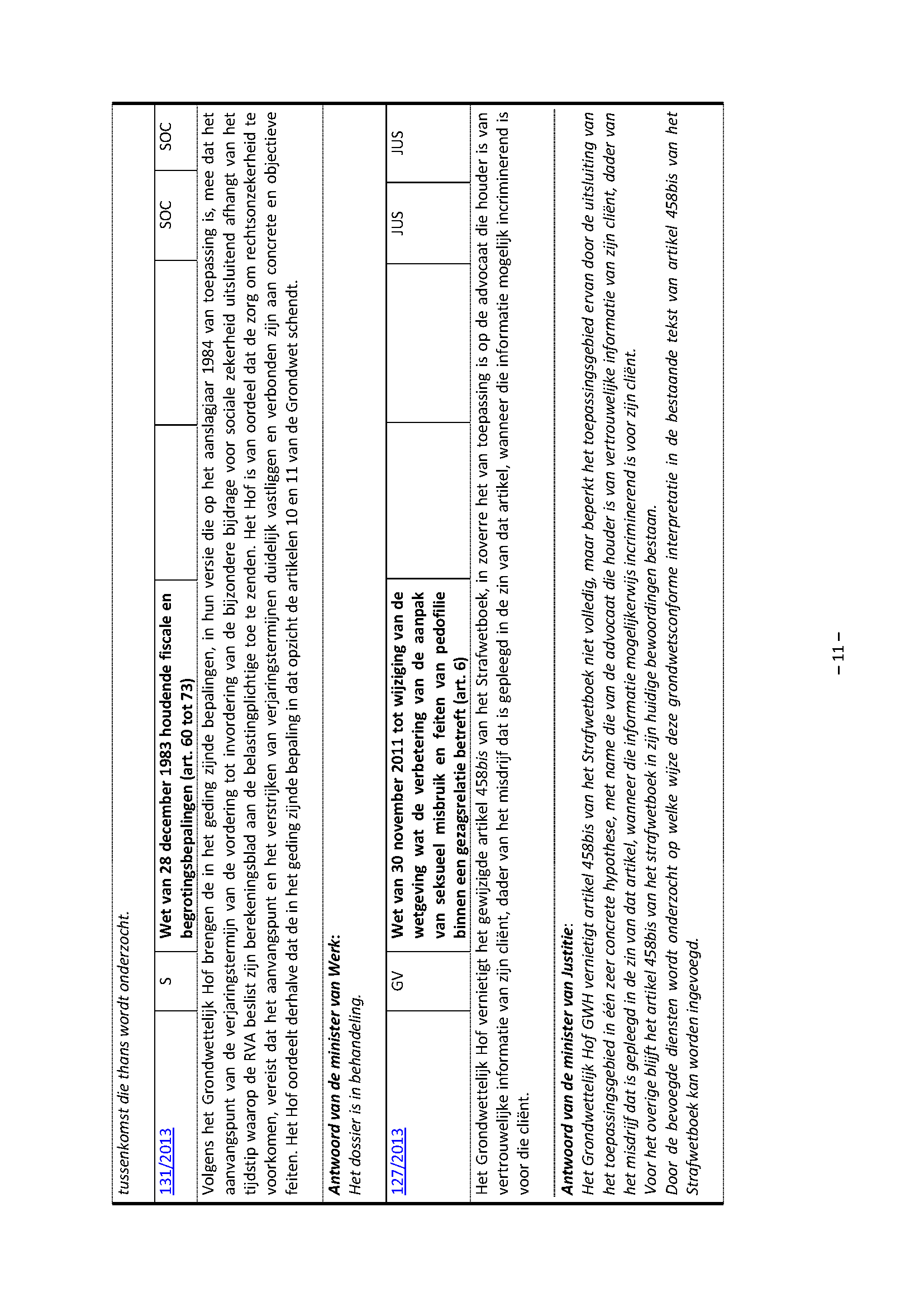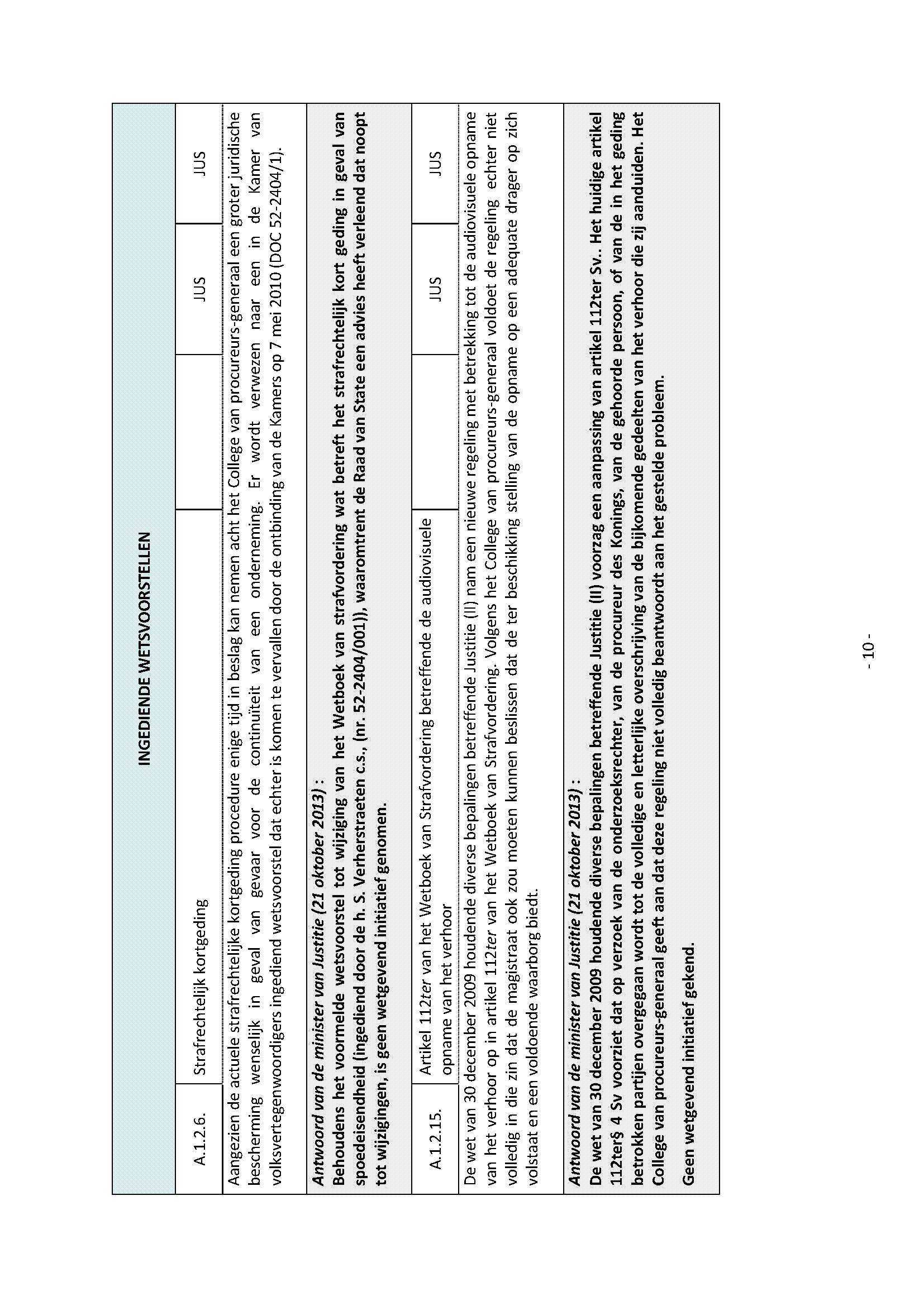 Bijlage 4. Analyse van het verslag 2010-2011 van het College van procureurs-generaal aan het Parlementair Comité belast met de wetsevaluatie... blz. 190;