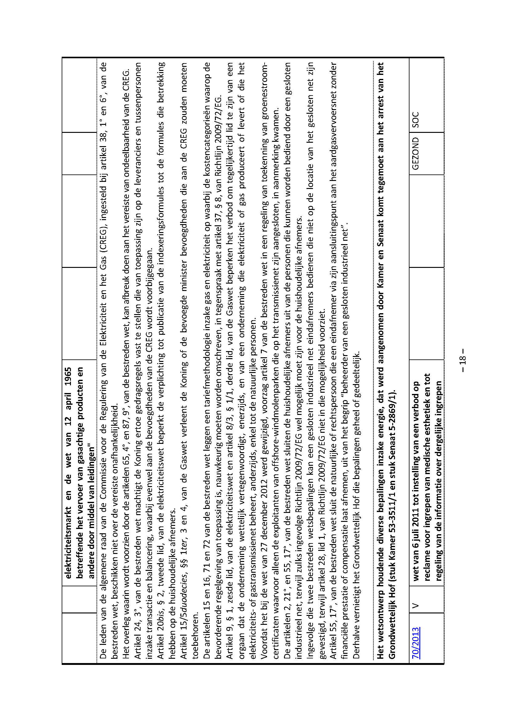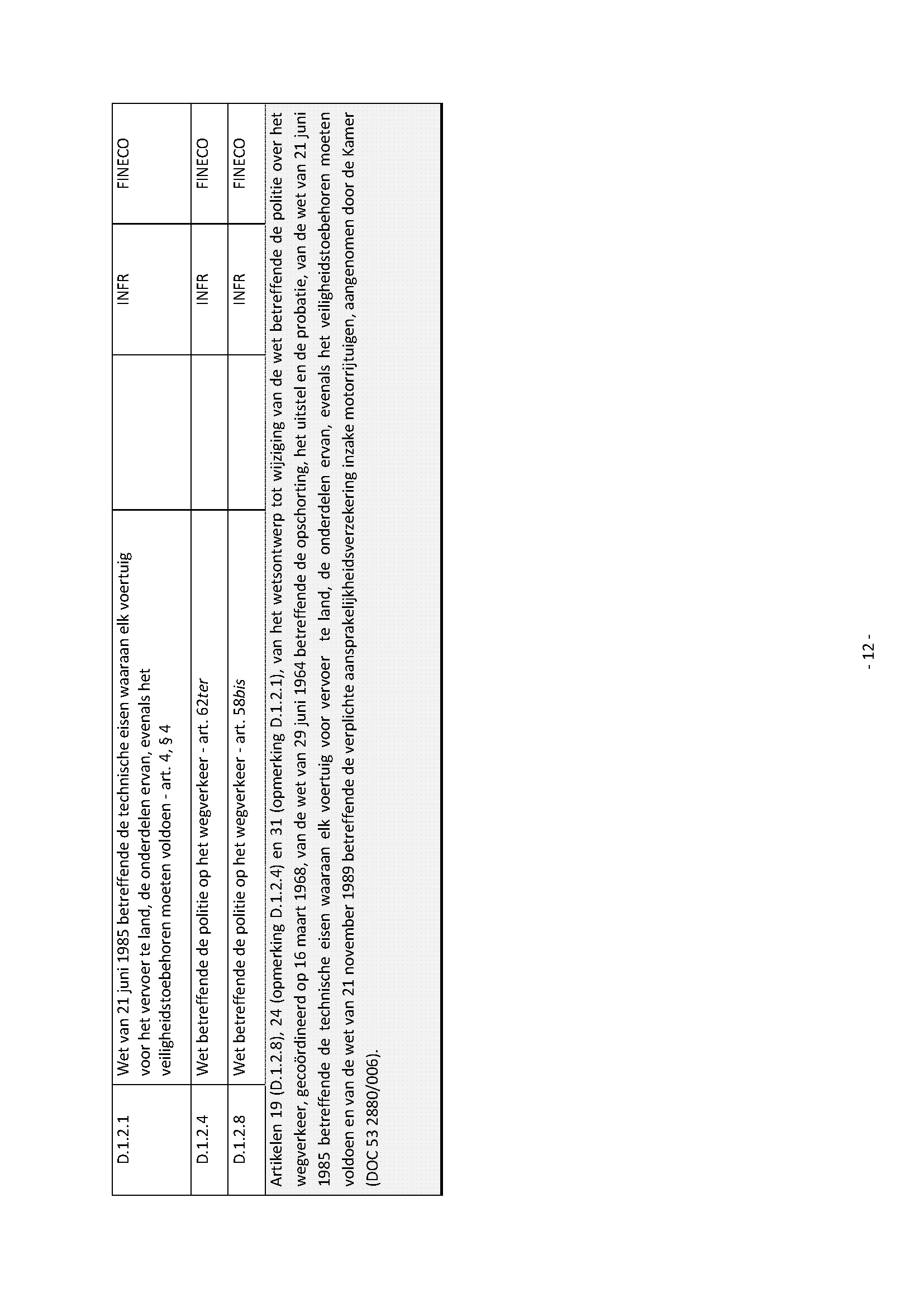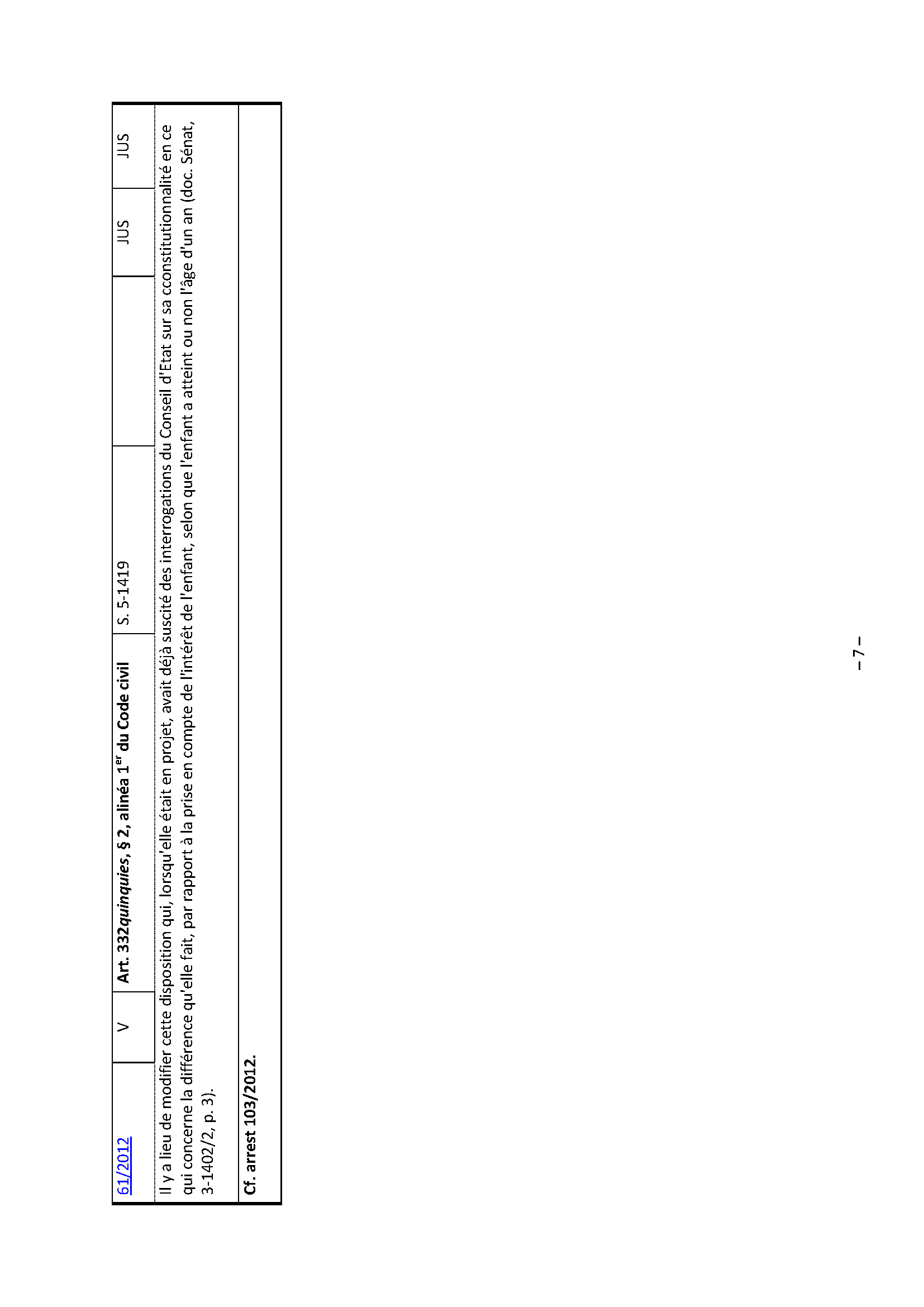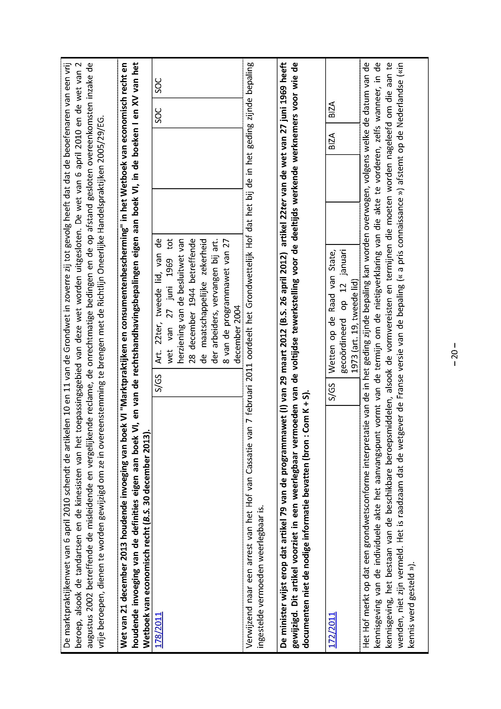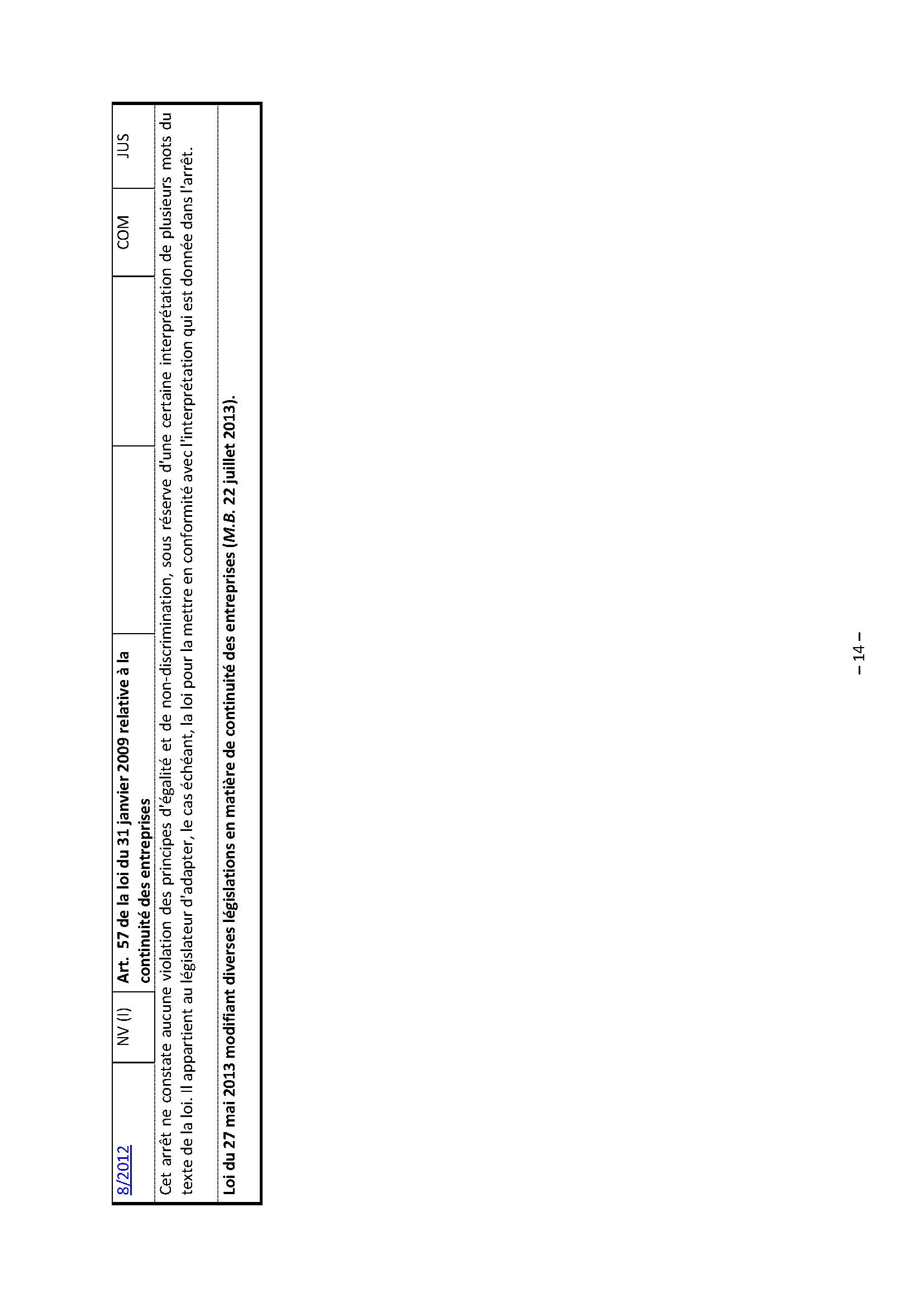 Bijlage 2. Tabel voor de inoverwegingneming van de arresten van het Grondwettelijk Hof (in 2012 uitgesproken arresten).................................... blz. 116;