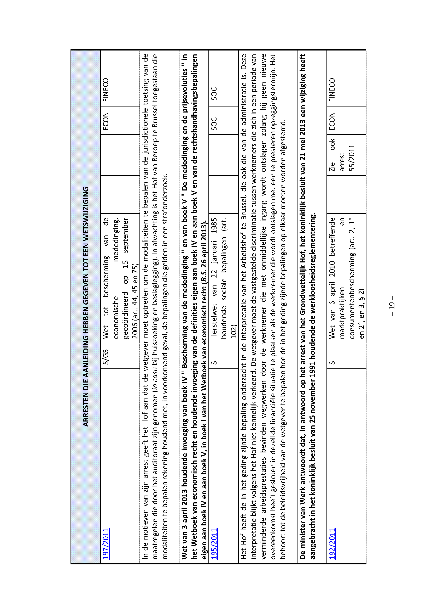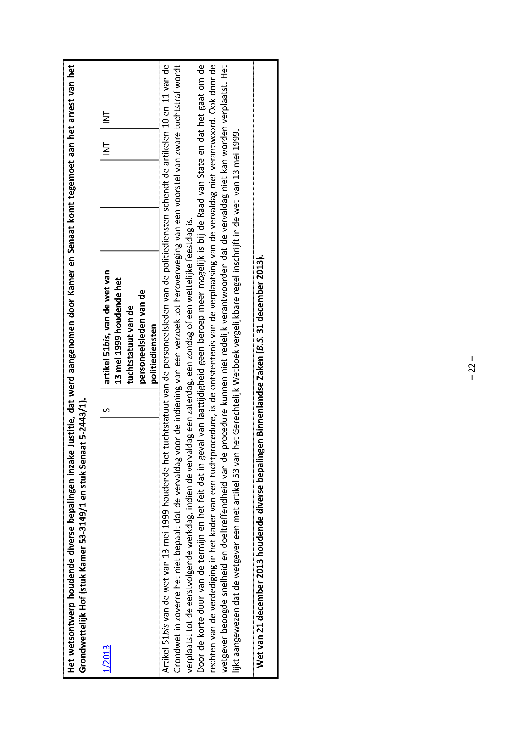 Bijlage 3. Tabel voor de inoverwegingneming van de arresten van het Grondwettelijk Hof (in 2013 uitgesproken arresten).................................... blz. 153;