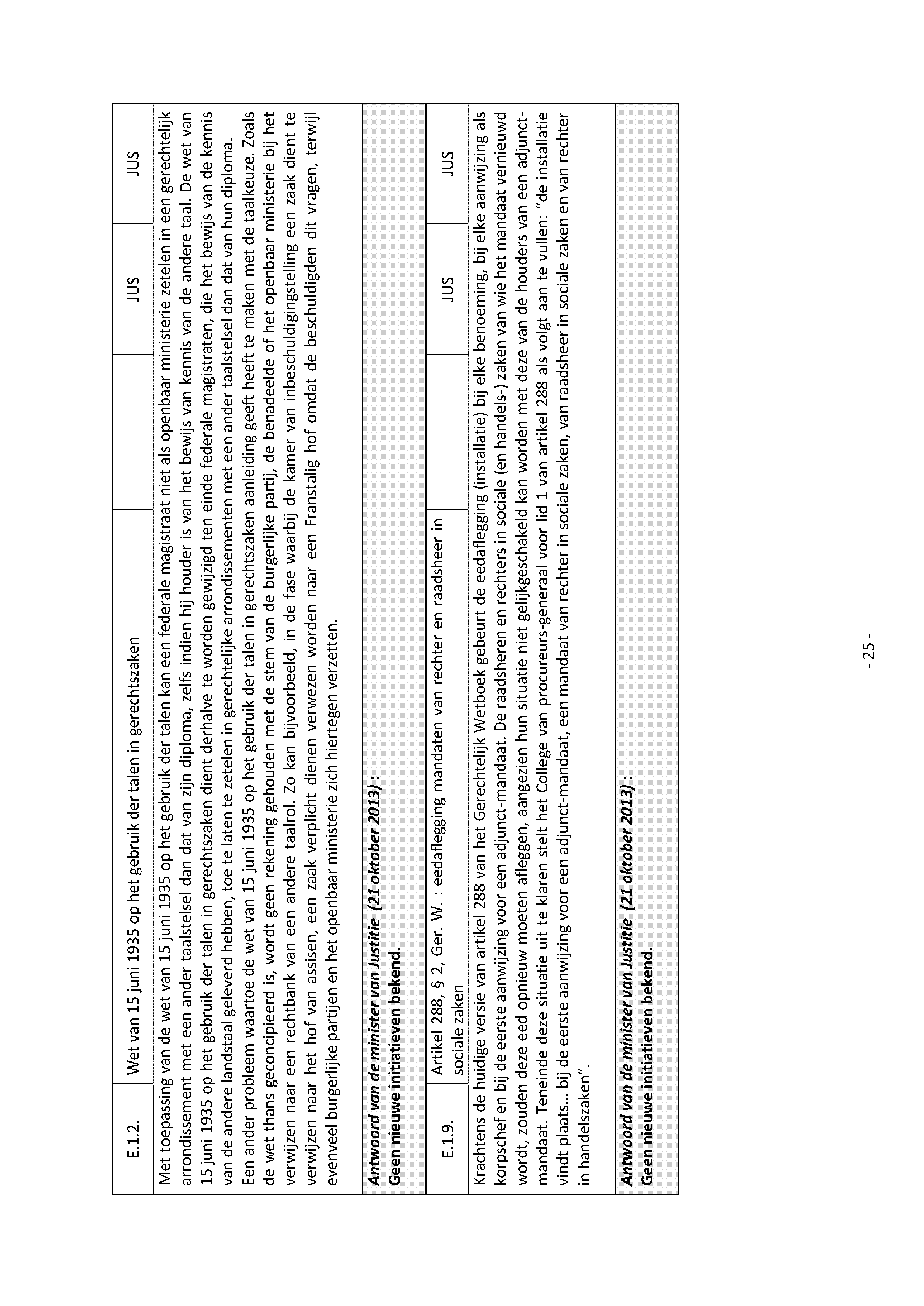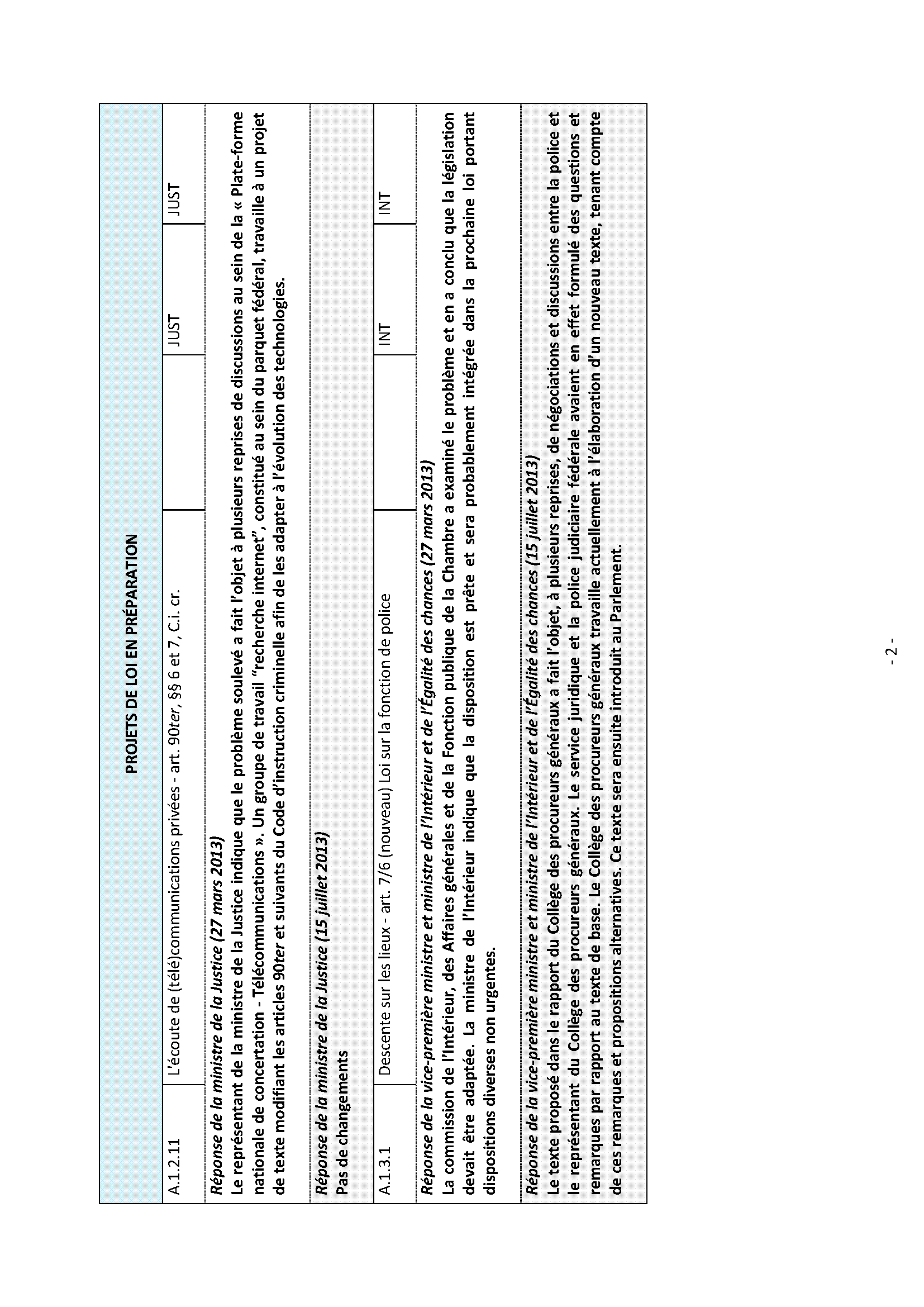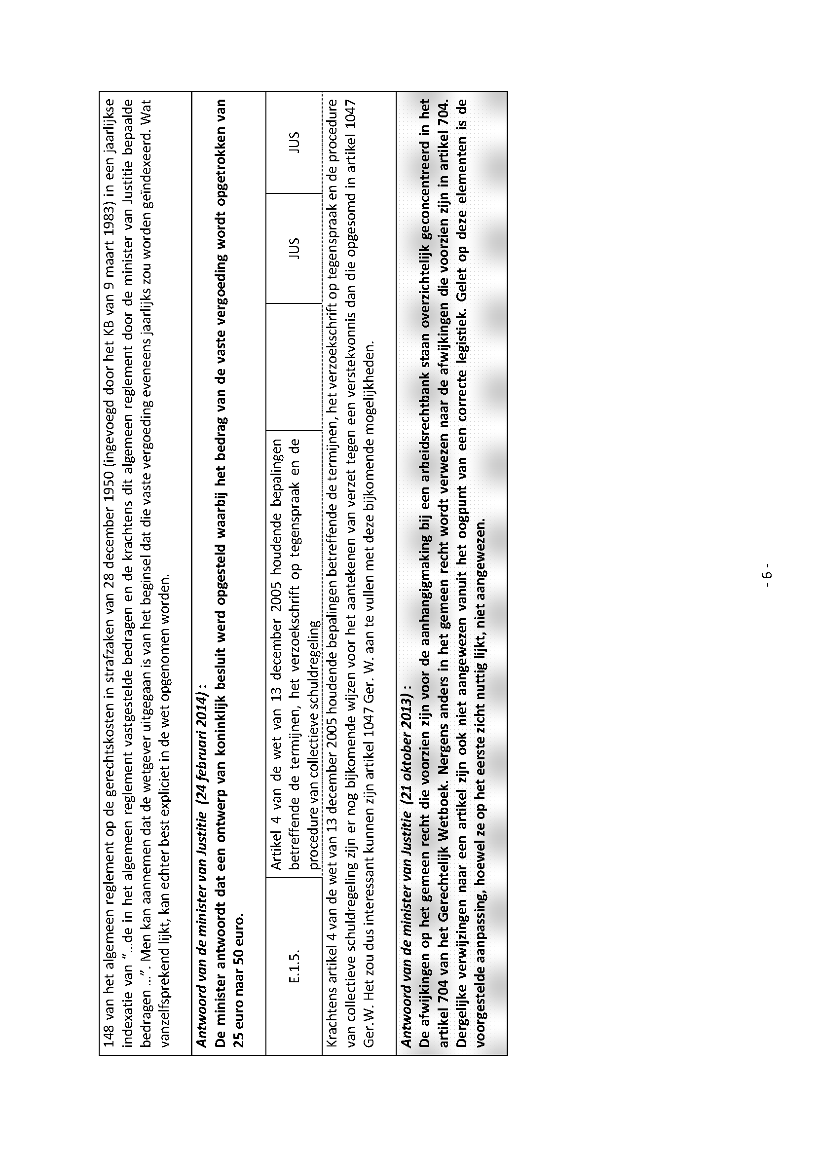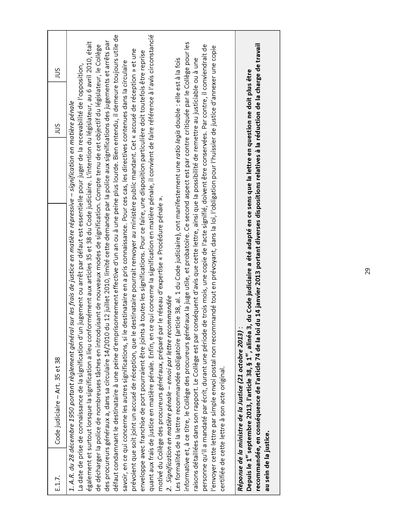 Tijdens zijn vergadering van 13 januari 2014 nam het Comité kennis van de antwoorden van de commissies. Het stelde vast dat uit de antwoorden van de minister van Justitie blijkt dat voor bepaalde opmerkingen een wetgevend initiatief wenselijk is of eventueel kan worden overwogen, doch dat geen concreet initiatief wordt aangekondigd. Het nodigde de minister uit om toe te lichten hoe het best gevolg kon worden gegeven aan deze opmerkingen.