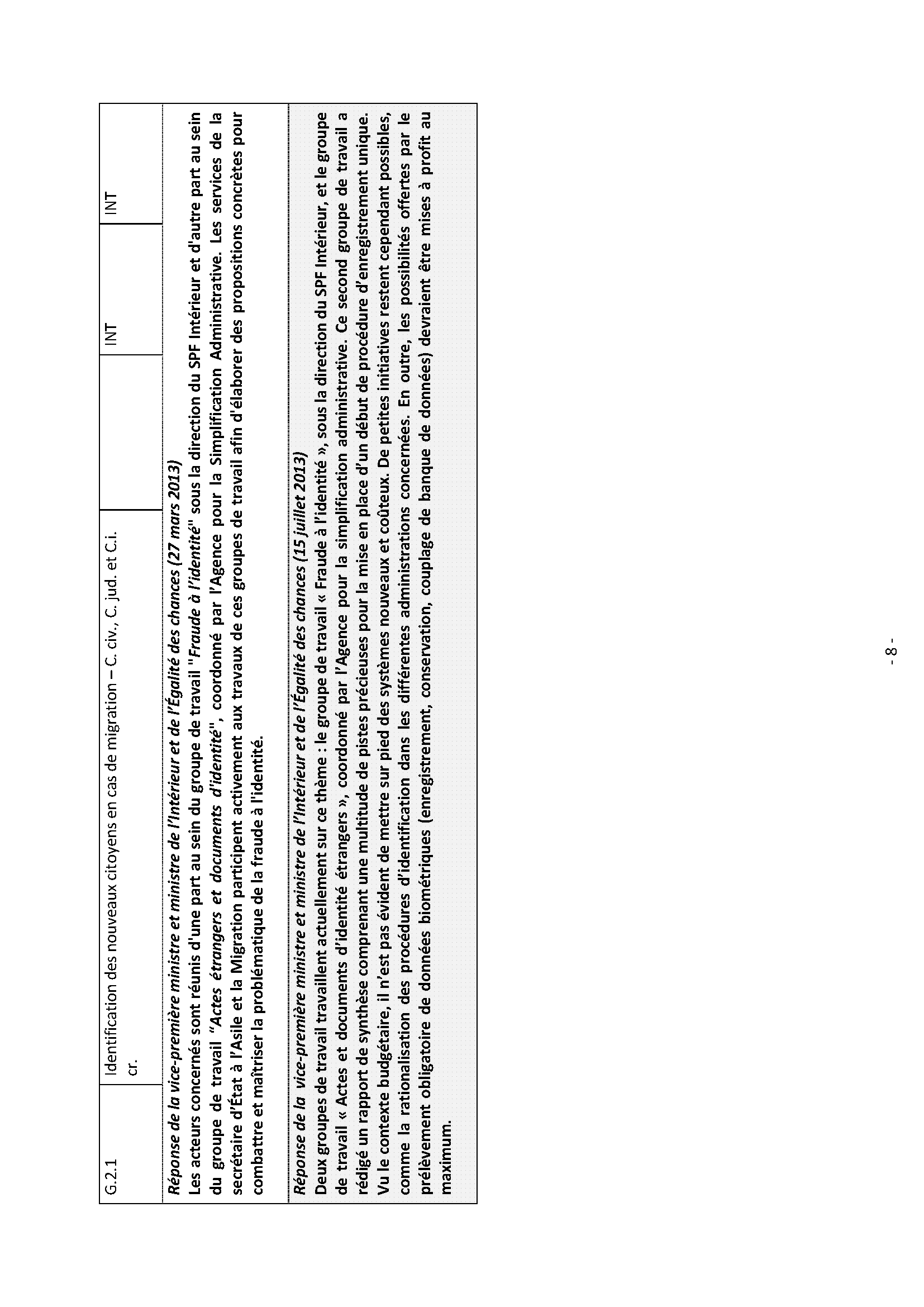 De geactualiseerde stand van zaken werd samen met de antwoorden van de commissies en de bevoegde ministers, opgenomen in een tabel die als bijlagen 4 en 5 bij dit verslag zijn gevoegd.