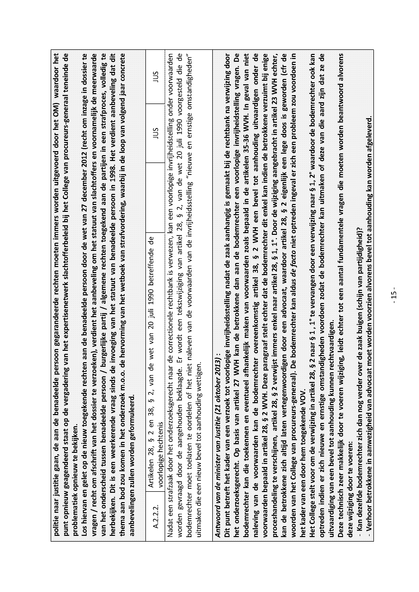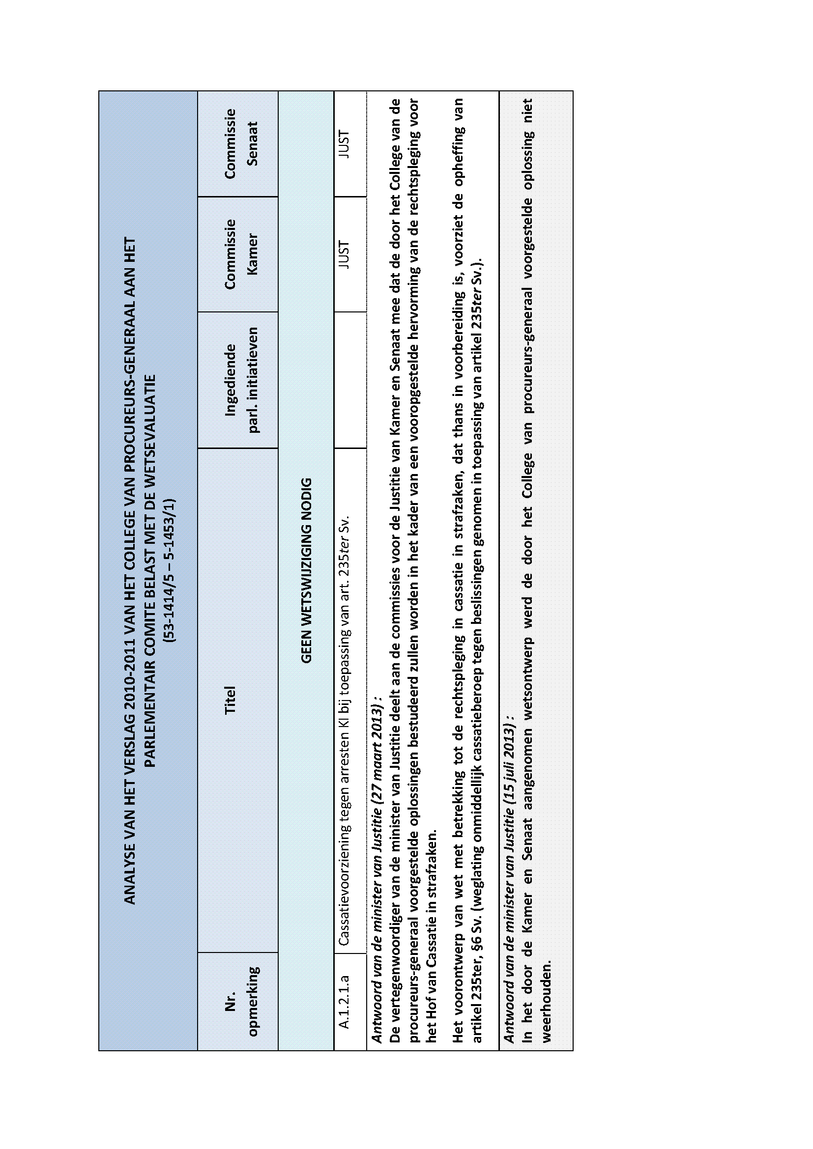 Bijlage 5. Analyse van het verslag 2011-2012 van het College van procureurs-generaal aan het Parlementair Comité belast met de wetsevaluatie... blz. 234.
