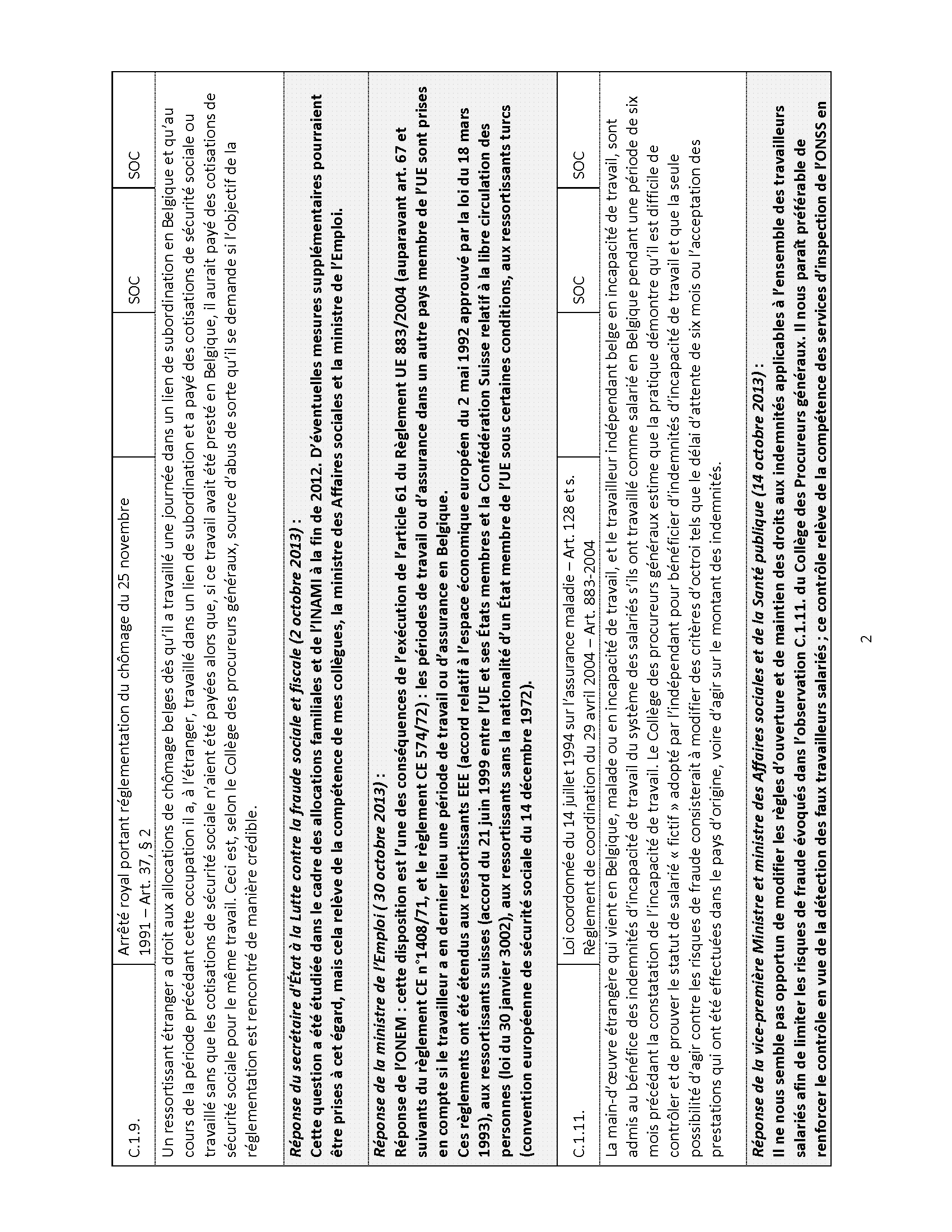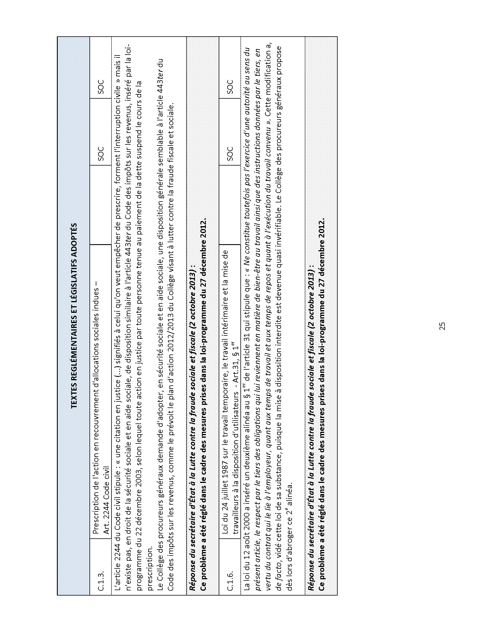 In zijn vergadering van 13 januari 2014 heeft het Comité kennis genomen van de antwoorden van de commissies. In dezelfde vergadering besliste het Comité een nieuwe lijst van 19 arresten gewezen tussen 1 juli en 31 december 2013 aan de bevoegde commissies mee te delen. In zijn vergadering van 24 februari 2014 heeft het Comité kennis genomen van de antwoorden.