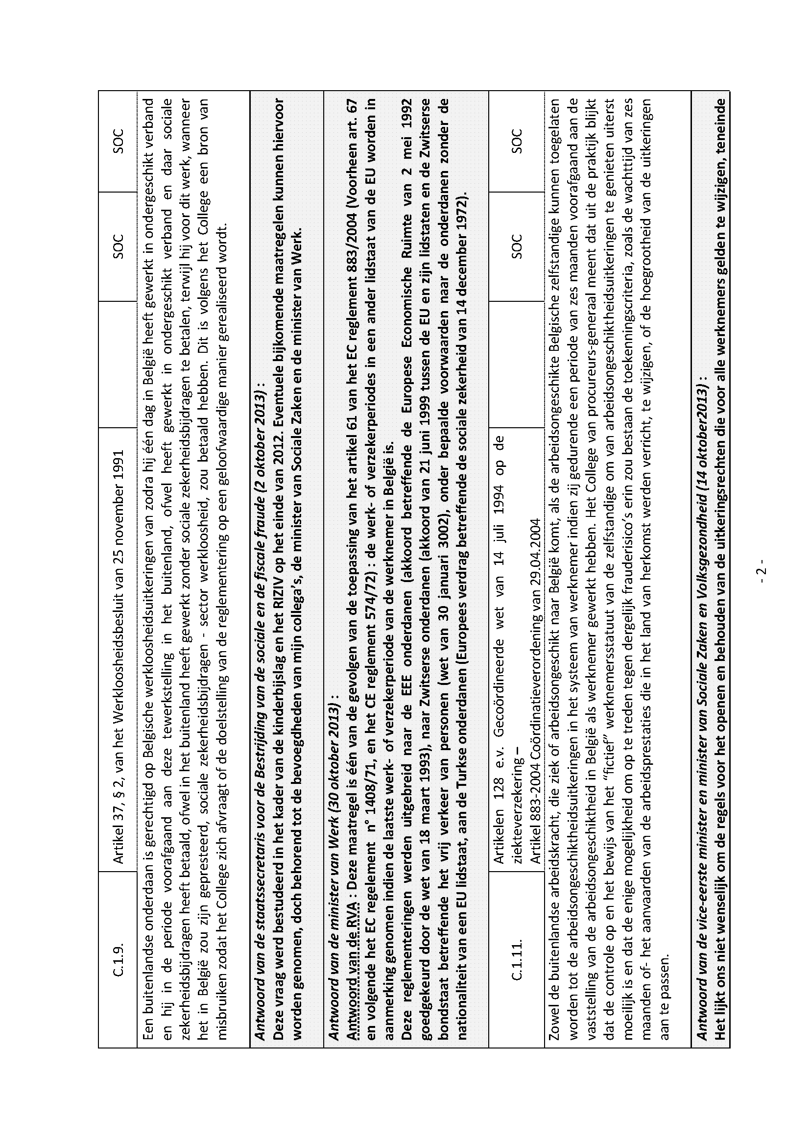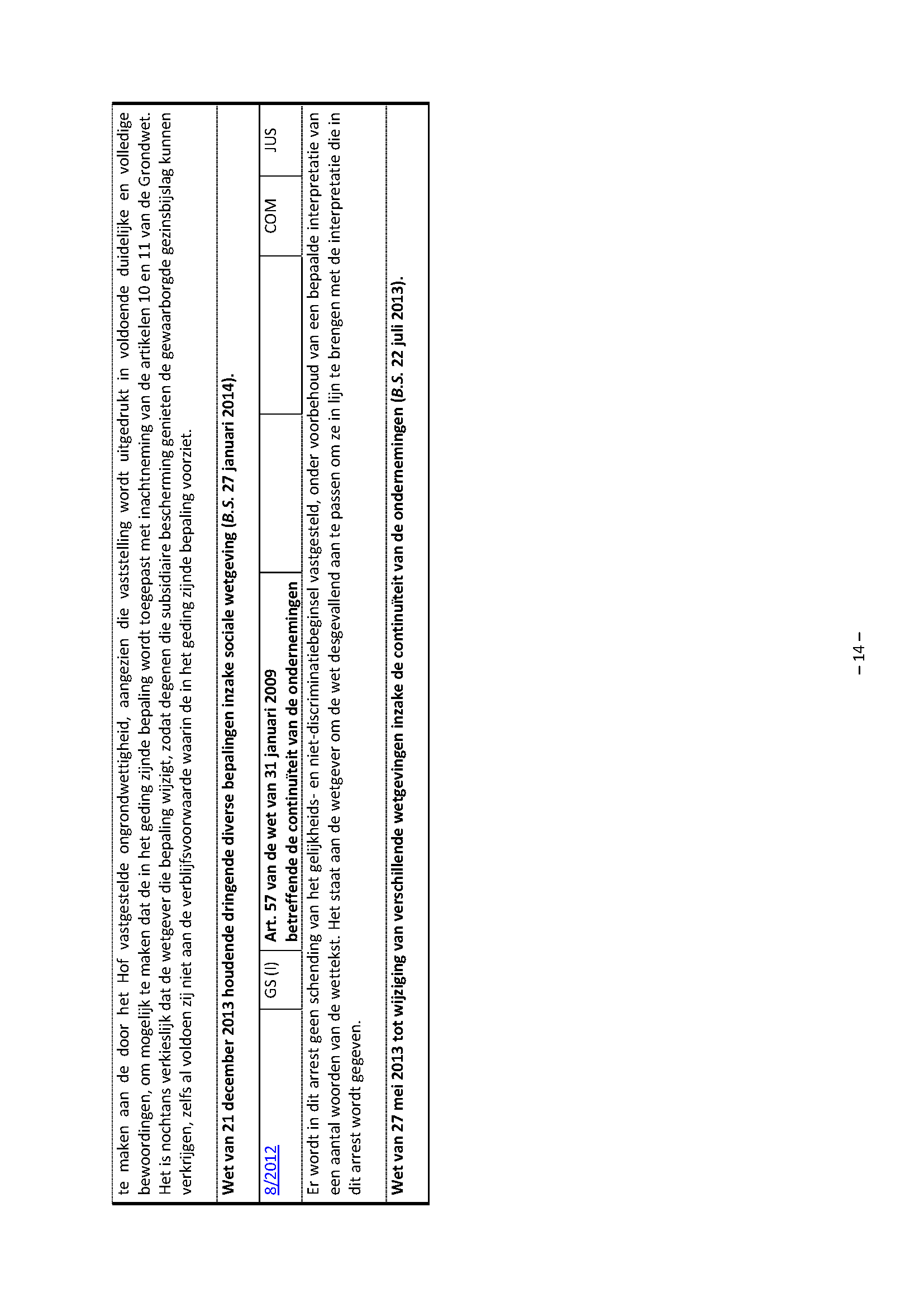 2. Opvolging van de arresten van het Grondwettelijk Hof gewezen in 2013