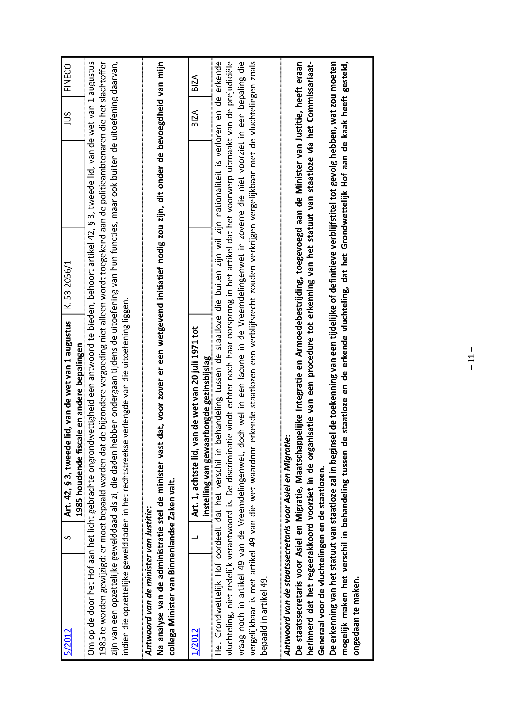3. Opvolging van de arresten van het Grondwettelijk Hof gewezen in 2011 en 2012
