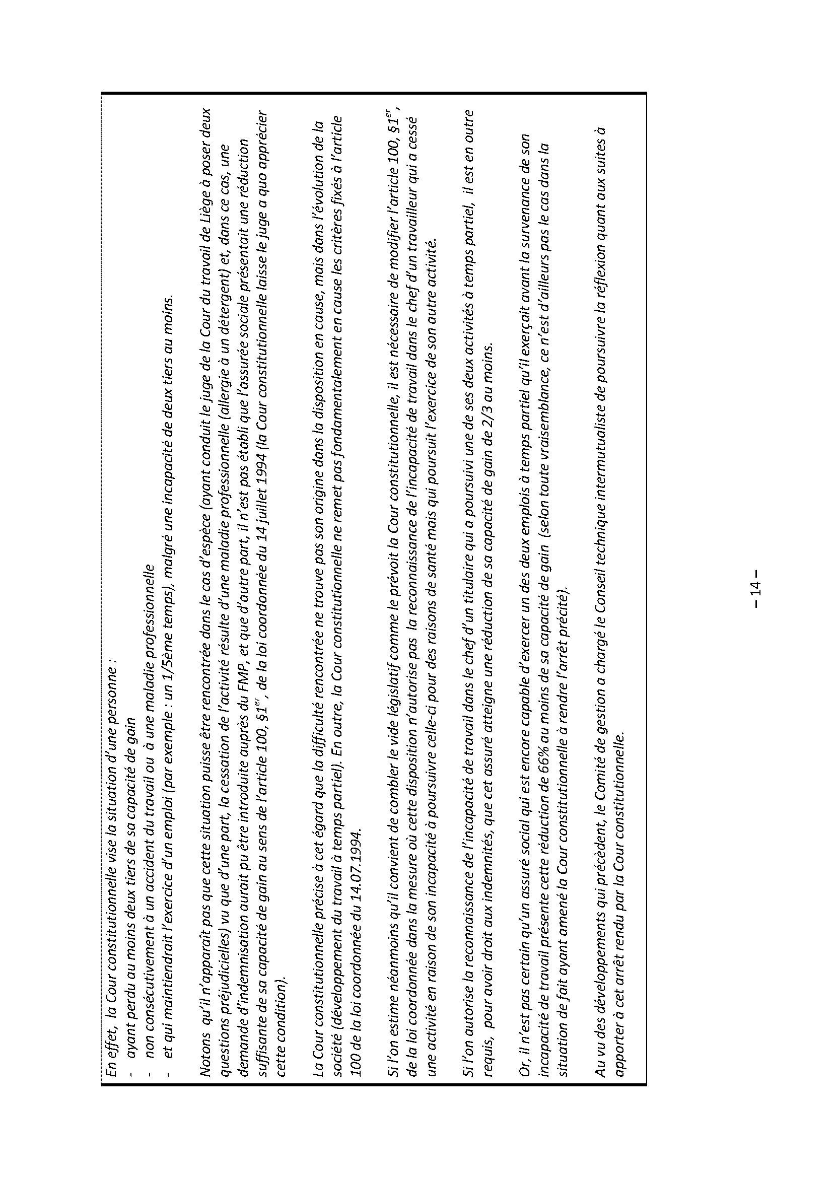 Samengevat heeft het Comité vastgesteld dat enerzijds de betreffende bepaling werd bevestigd door het Grondwettelijk Hof en dat anderzijds een wijziging in de zin die wordt voorgesteld door de verzoeker, zou ingaan tegen het Europees recht. Bijgevolg was het Comité van oordeel dat het verzoekschrift niet verder moest worden onderzocht en heeft het het dossier afgesloten.