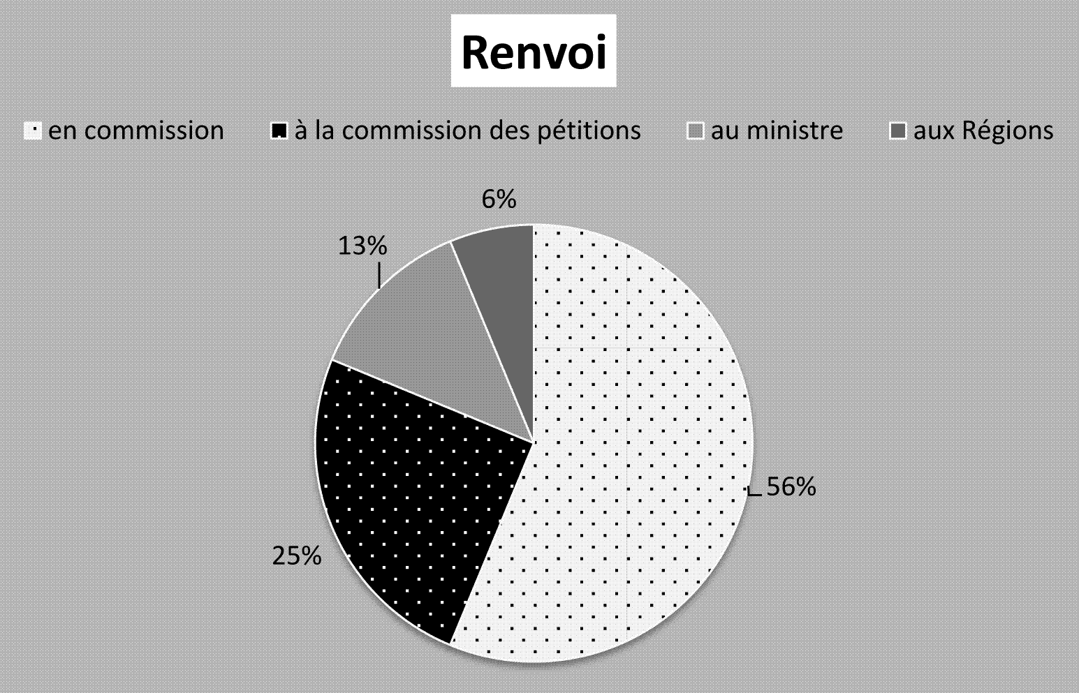In het onderstaande diagram worden de voormelde cijfers in kaart gebracht (in percentage van de verzoekschriften) :
