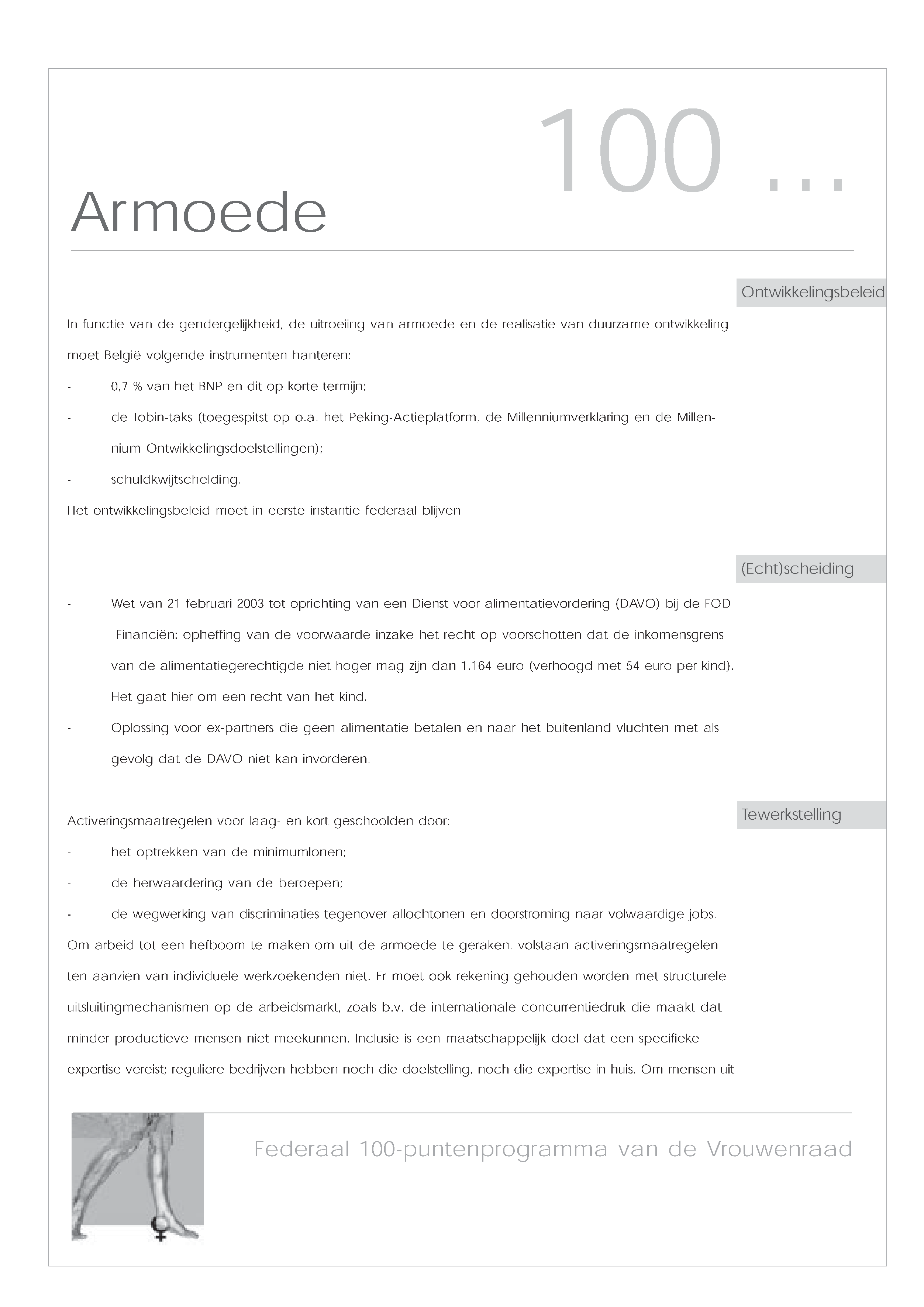 B. Uiteenzetting door mevrouw F. Van der Wildt, voorzitster van de Nederlandstalige Vrouwenraad