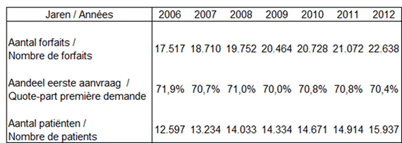 Het aantal forfaits evolueerde van 17.517 in 2006 naar 22.638 in 2012, dit is een toename met 29,23% op 7 jaar tijd.